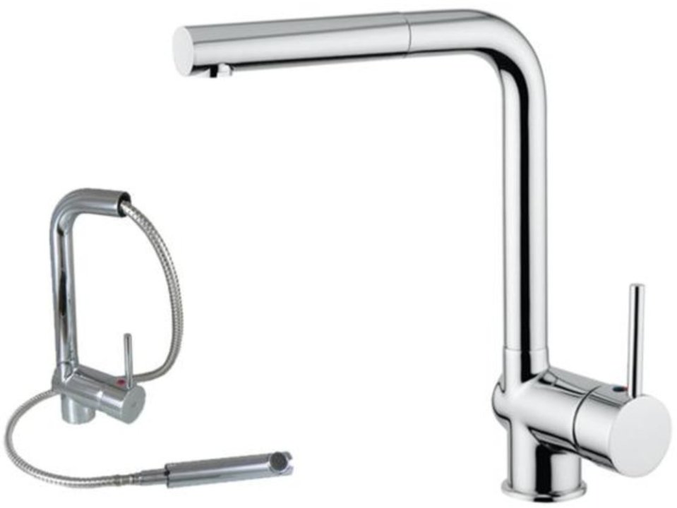 Dřezová baterie s výsuvnou koncovkou, povrchová úprava Celonerez, výška 300 mm. Balení obsahuje kompletní příslušenství pro instalaci…
